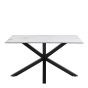 FUMES Dining Table with Ceramic White Top 135cm Included 4 Swivel Cream Dining Chair with Armrest