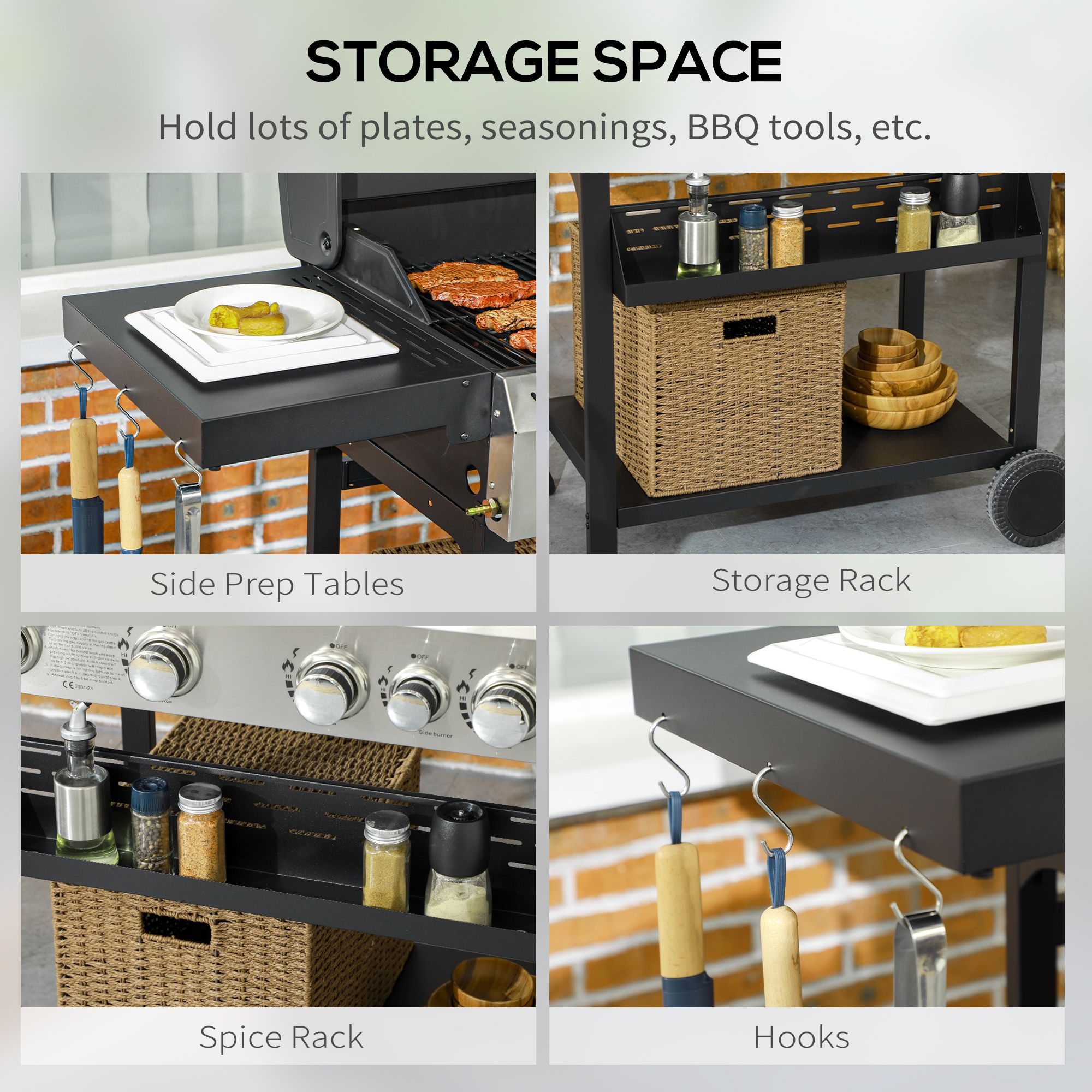 Galvanised Steel 4+1 Gas Burner BBQ Grill Trolley, Black