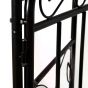 - Made from powder coated metal for a tough and durable structure, able to cope with standing outdoors • Elegant design combining a tall arch with two doors for a beautiful entrance to your garden and home • Scrolling all over for a unique look • Side trellis’ allow plants and vines a place to grow against, with rails on the top to hang flowers and baskets for – allowing you to create a spot full of greenery and colour • Four spiked legs to push into soft ground, with horizontal metal bars to prevent arch sinking into ground