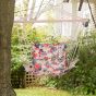 - WIDE SEAT: Covered in bright floral print design for style, there is plenty of room for you to sit. DETACHABLE PILLOW: This swinging garden chair has a detachable pillow that provides comfort and support to your head and neck, with popper fastenings to take off and put on easily.
