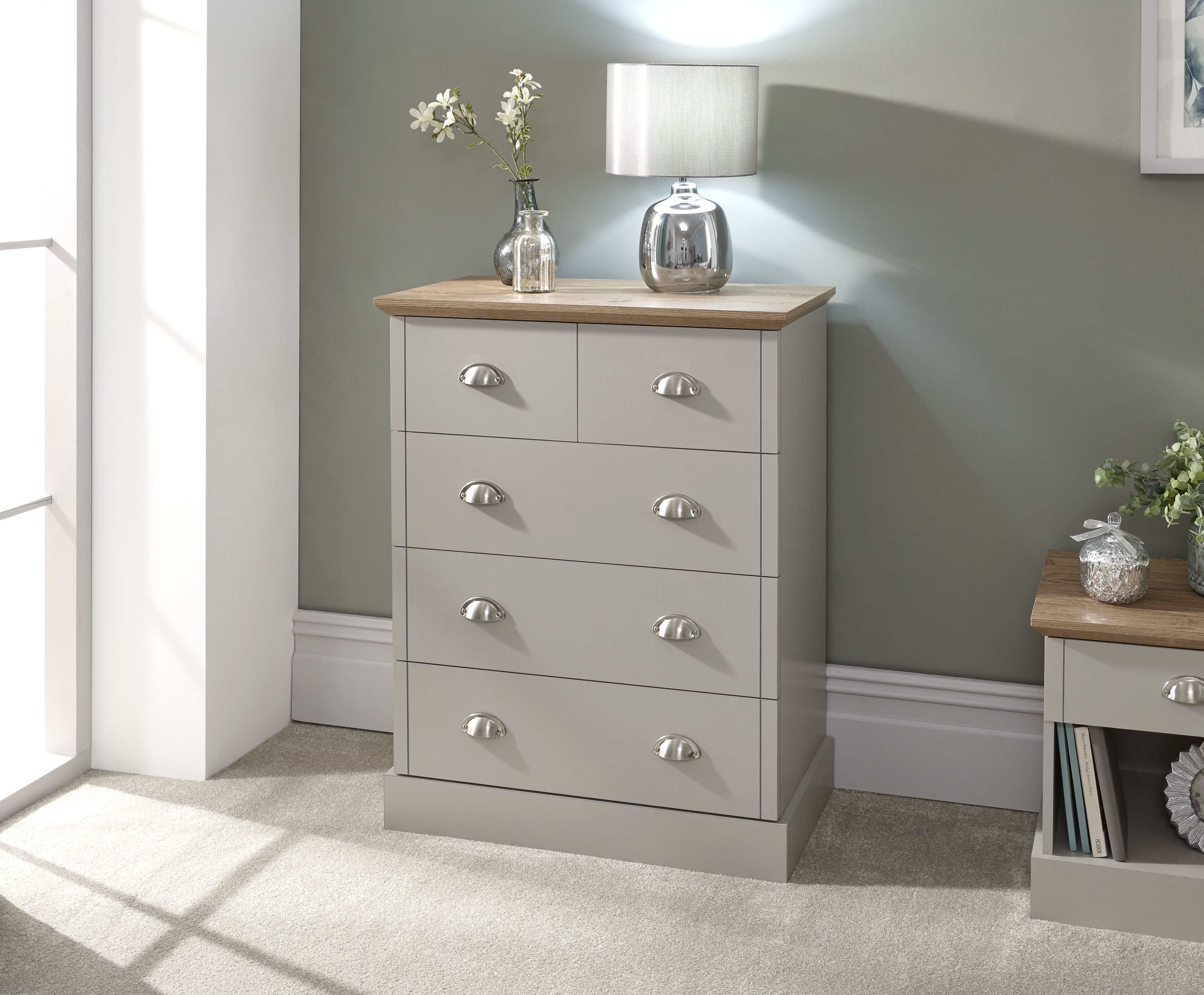 KESWICK Grey Chest of Drawers - Medium-sized, 5 Drawers