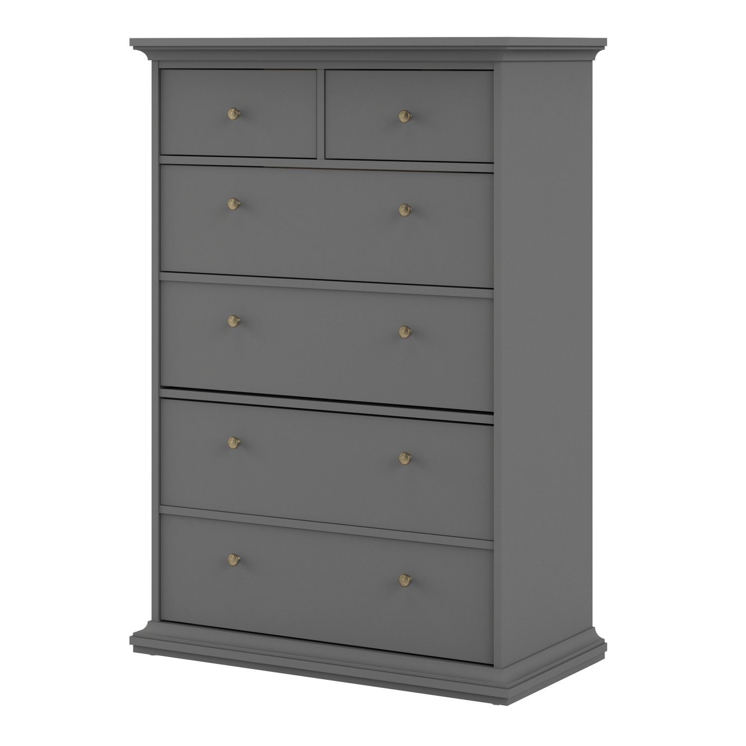 PORTHOPE Grey Chest of Drawers - Large-sized, 6 Drawers