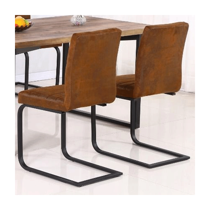 Helston Fabric Dining Chairs Set of 4 - Brown with Black Metal Legs