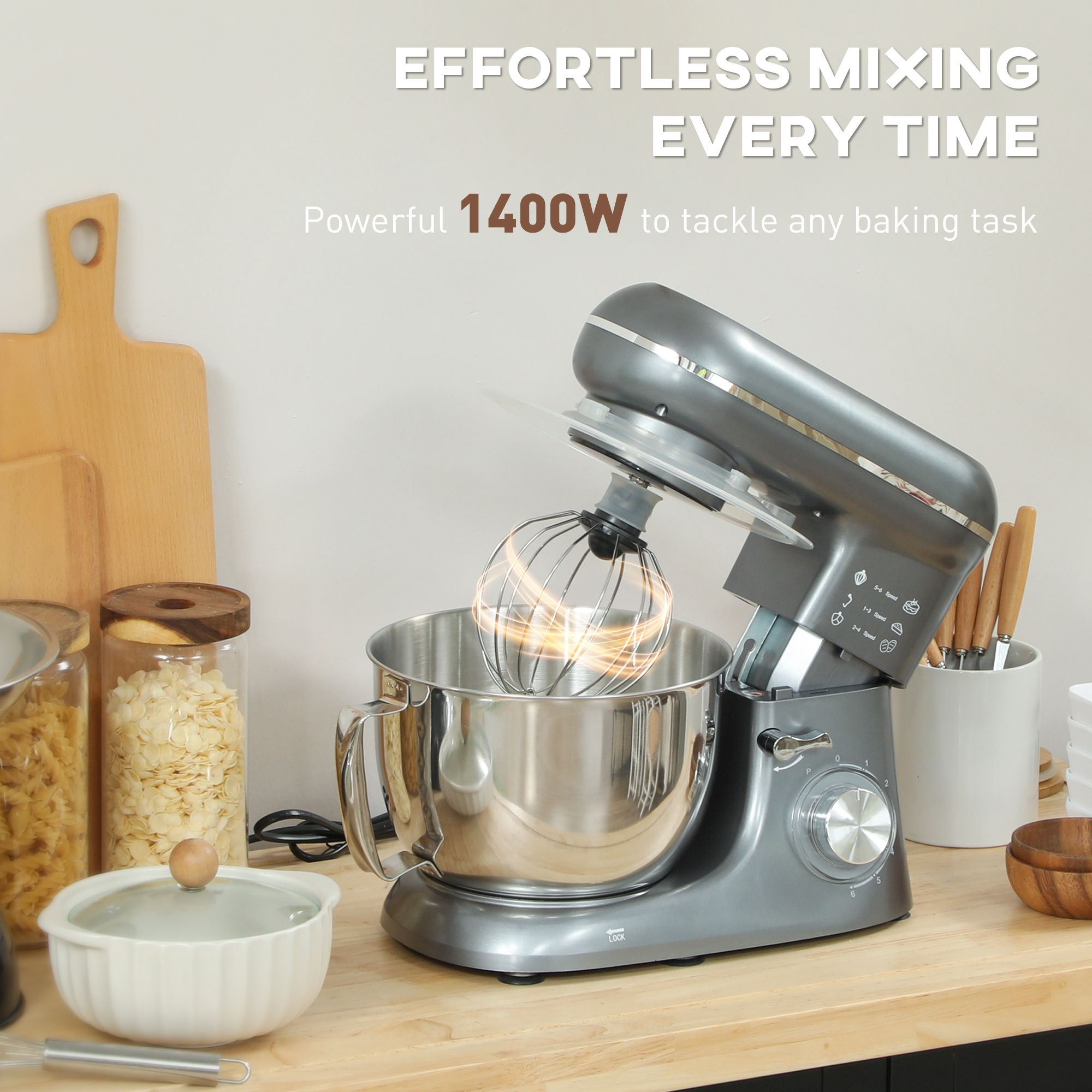 HERON 1300W Kitchen Stand Mixer with Accessories - Silver
