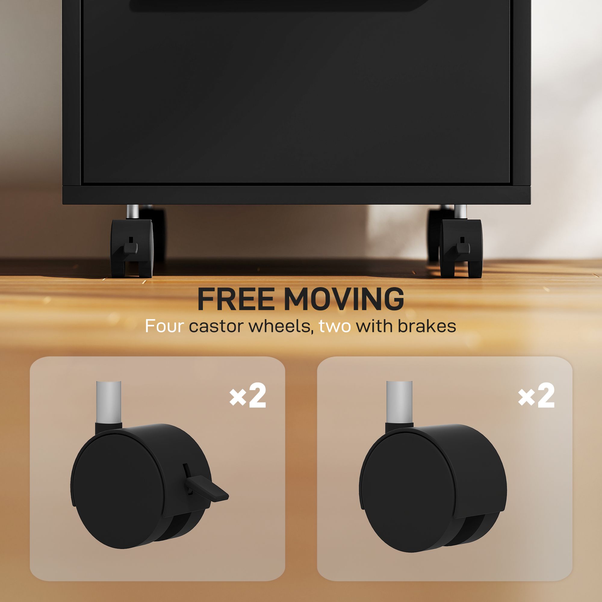 HERON 3 Drawer Locking Filing Cabinet Black