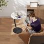 HERON C Shaped Side Table Round Bedside Table with Marble Effect Top White