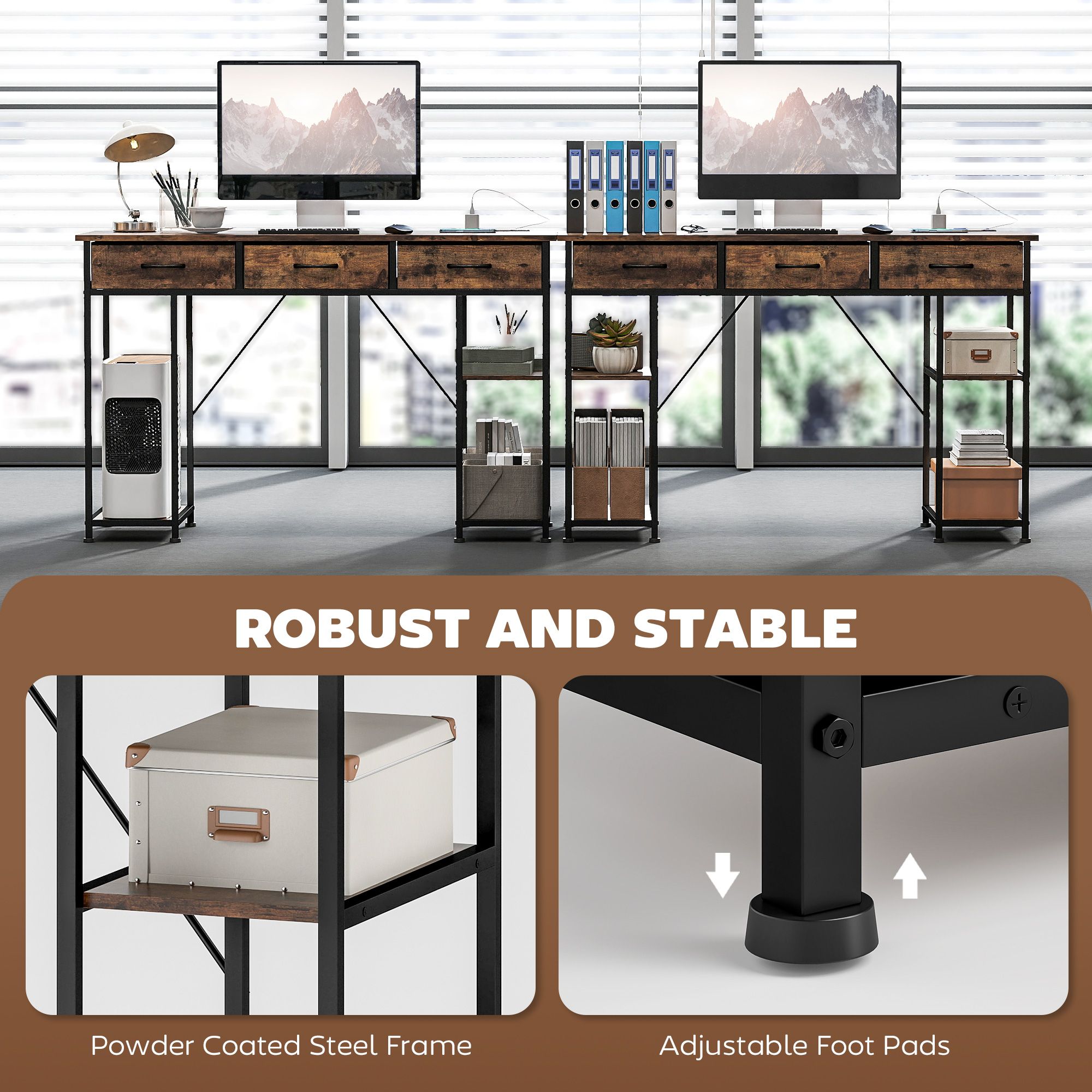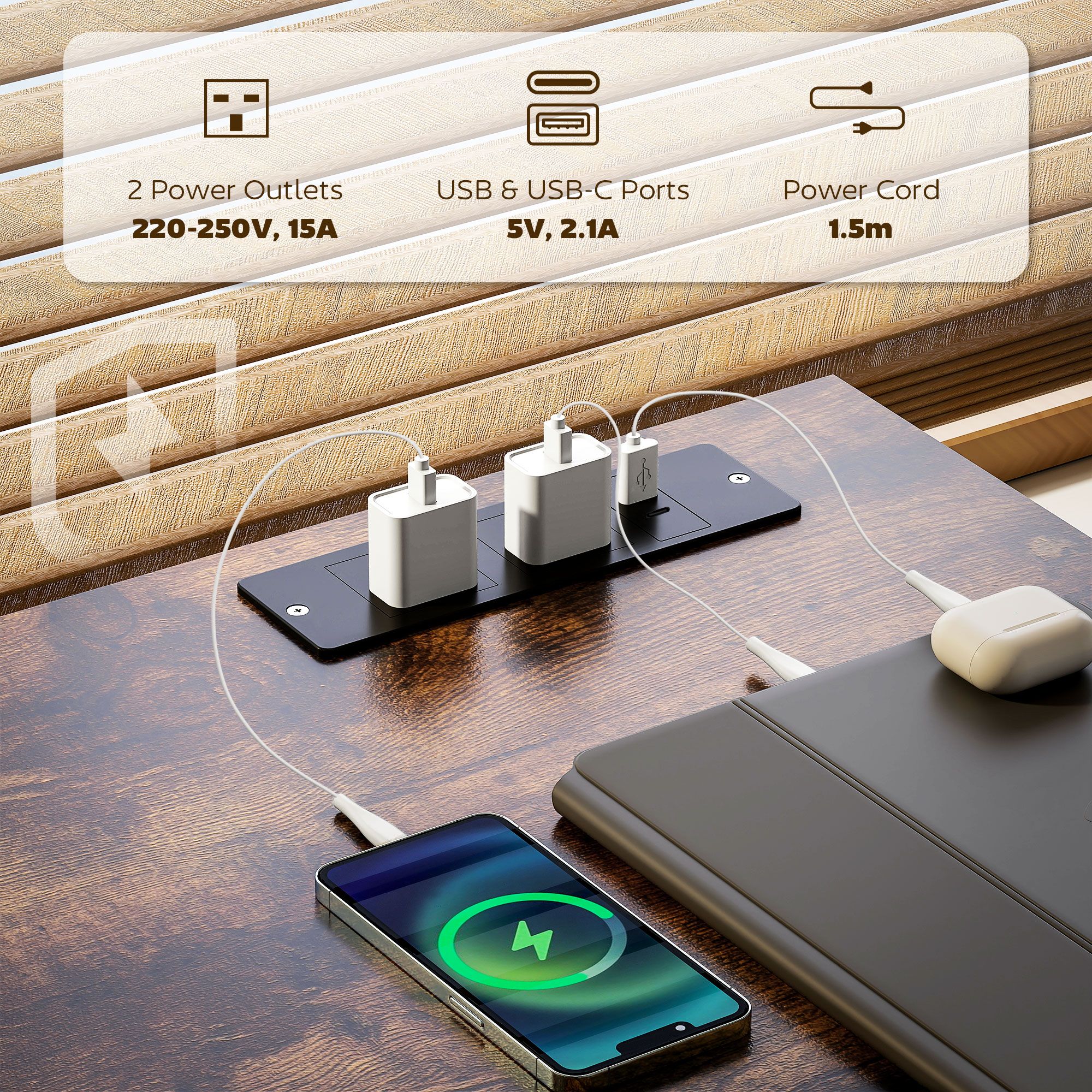 HERON Computer Desk with Power Outlets Office Desk Rustic Brown