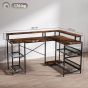 HERON L Shaped Gaming Desk with LED Lights and Power Outlets, Rustic Brown