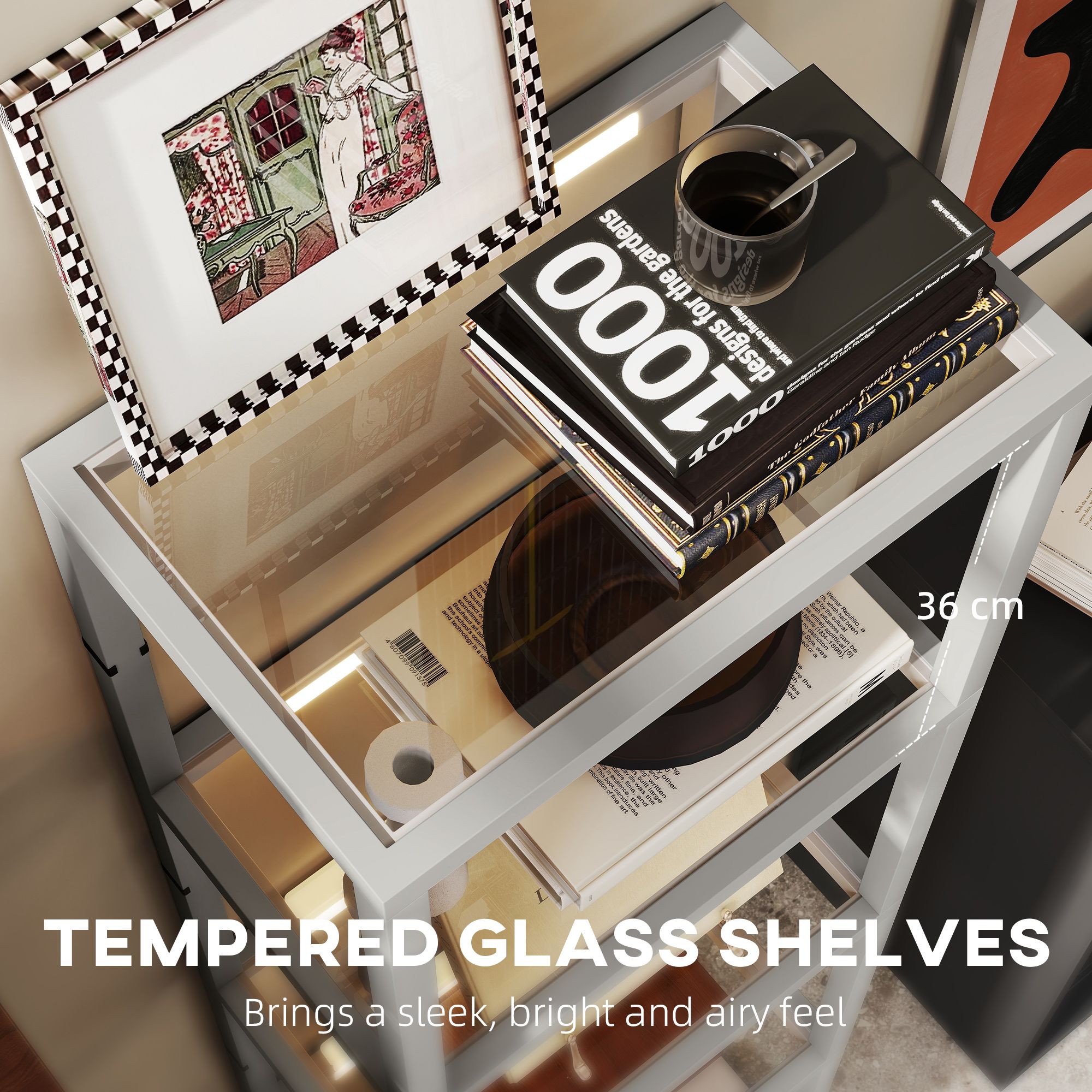 HERON LED Floor Lamp with Glass Shelves 4 Layers Dimmable Standing Lamp - Grey