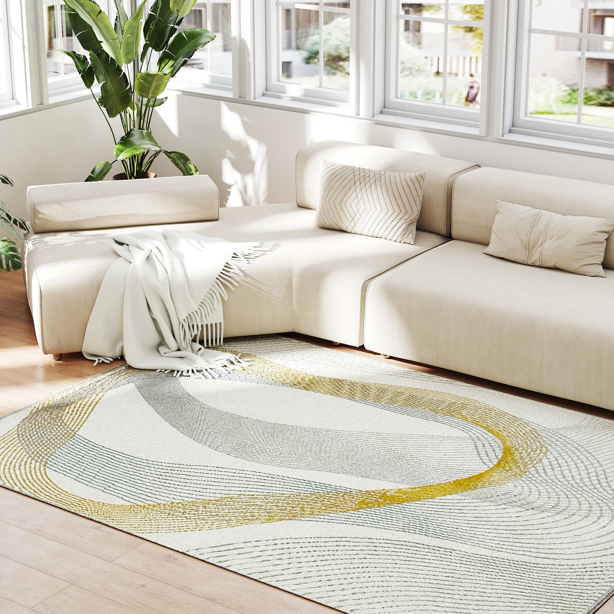 HERON Modern Area Rug 170x120cm Allergy Friendly Cream White
