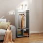 HERON Open Wardrobe for Bedroom, Small Wardrobe on Wheels with Clothes Rail, Storage Shelves, Mobile Garment Rack for Clothes Storage, Grey