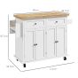 HERON Rolling Kitchen Island Storage Trolley with Rubber Wood Top & Drawers for Dining Room, White