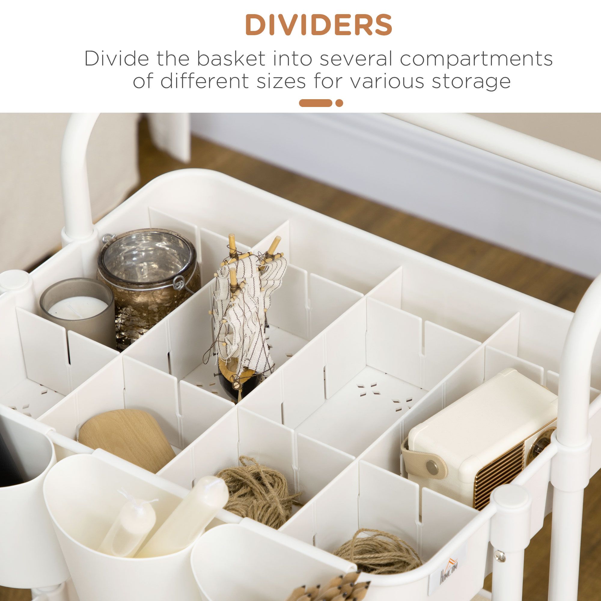 HERON Three-Tier Home Trolley, with Handle and Wheels - White