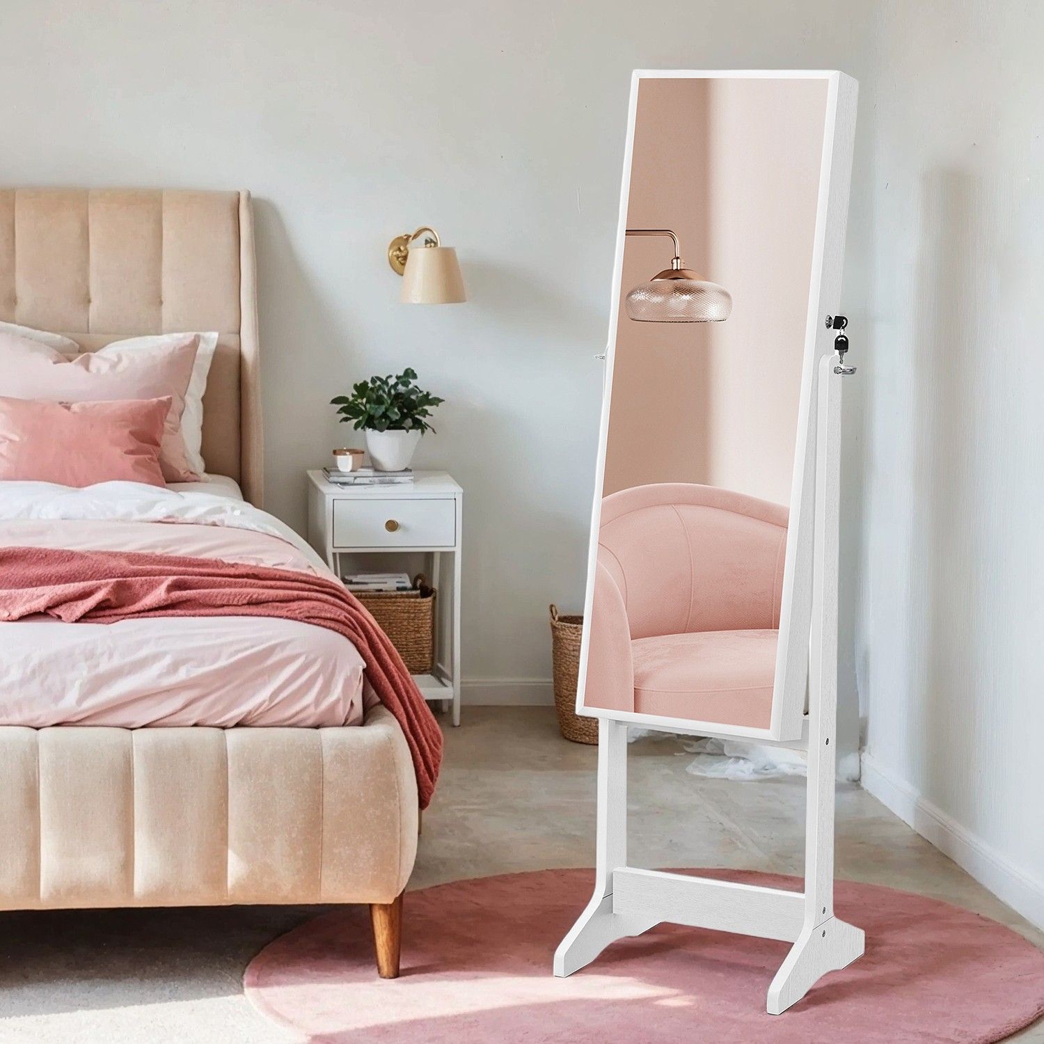 Jewellery Cabinet - VERRIA Standing Armoire with Mirror Lockable Organizer - White
