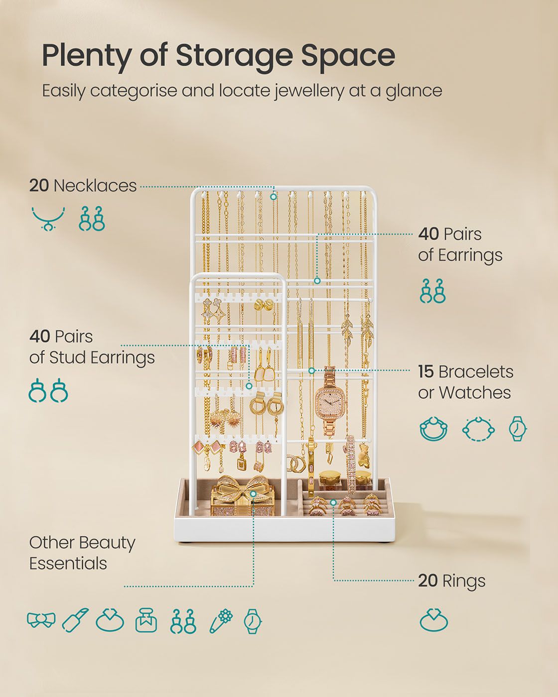 Jewellery Stand - AVOLIA Metal Frame Velvet Tray - Matte White