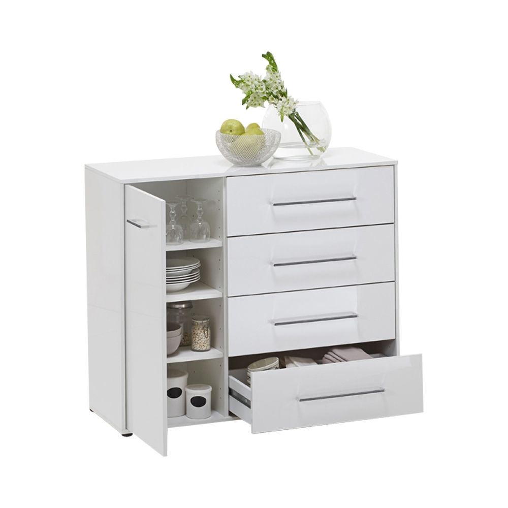 Juli 3 Up 4 Drawer 1-Door Storage Sideboard - White Gloss