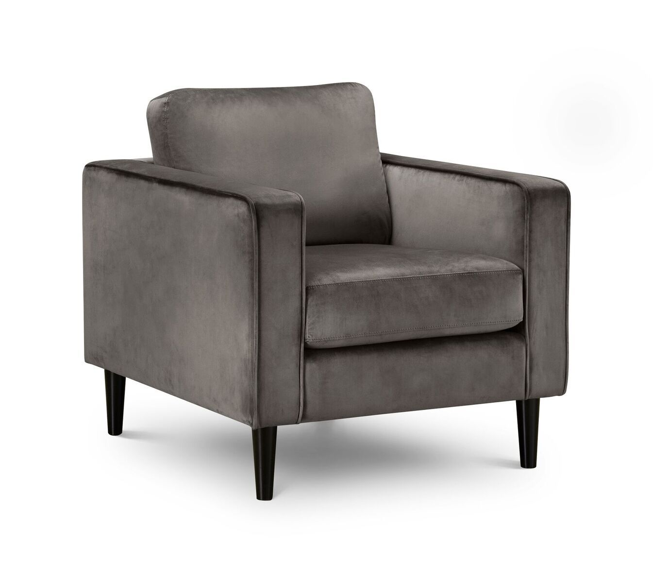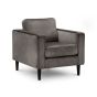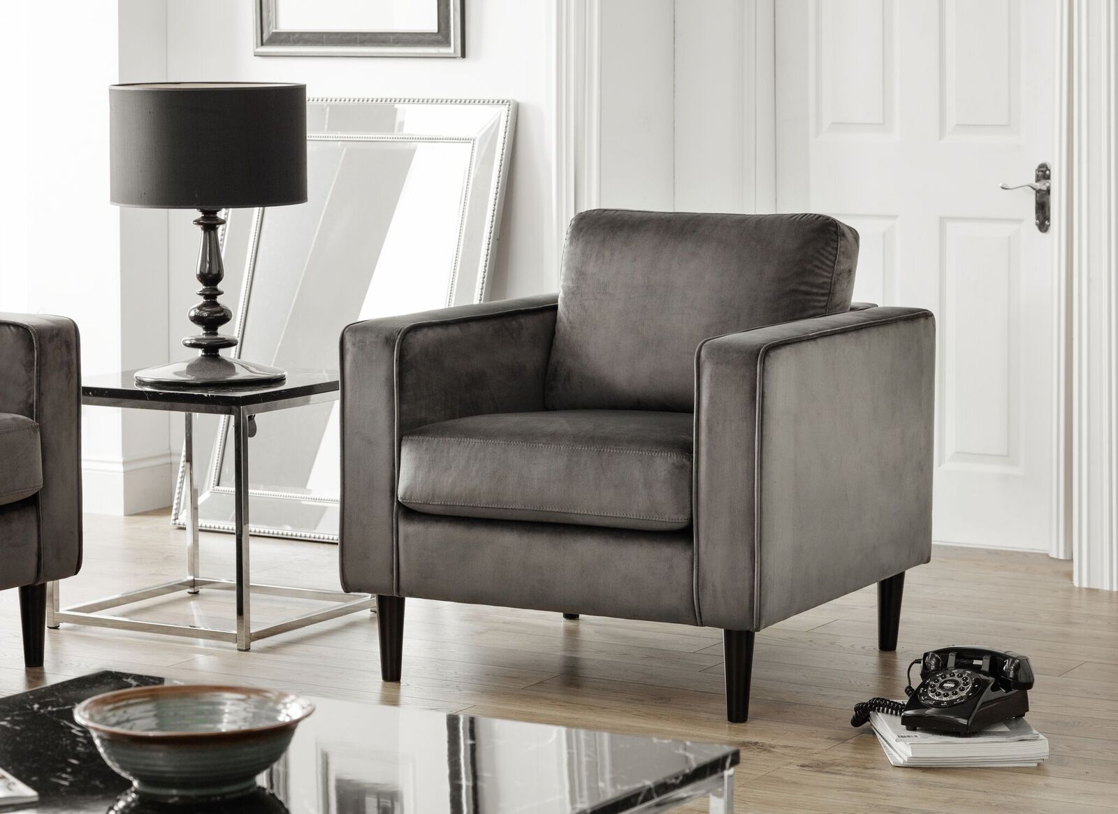 The Hayward Armchair has a very elegant and stylish design that will suit any home. Finished in a luxurious grey velvet fabric, the armchair has a soft padded frame allowing you to relax in comfort and style. The Chair is available with two leg colour options - black or light oak - please specify which you would like when placing order. The Hayward can be accompanied by a matching 2 or 3 seater sofa.