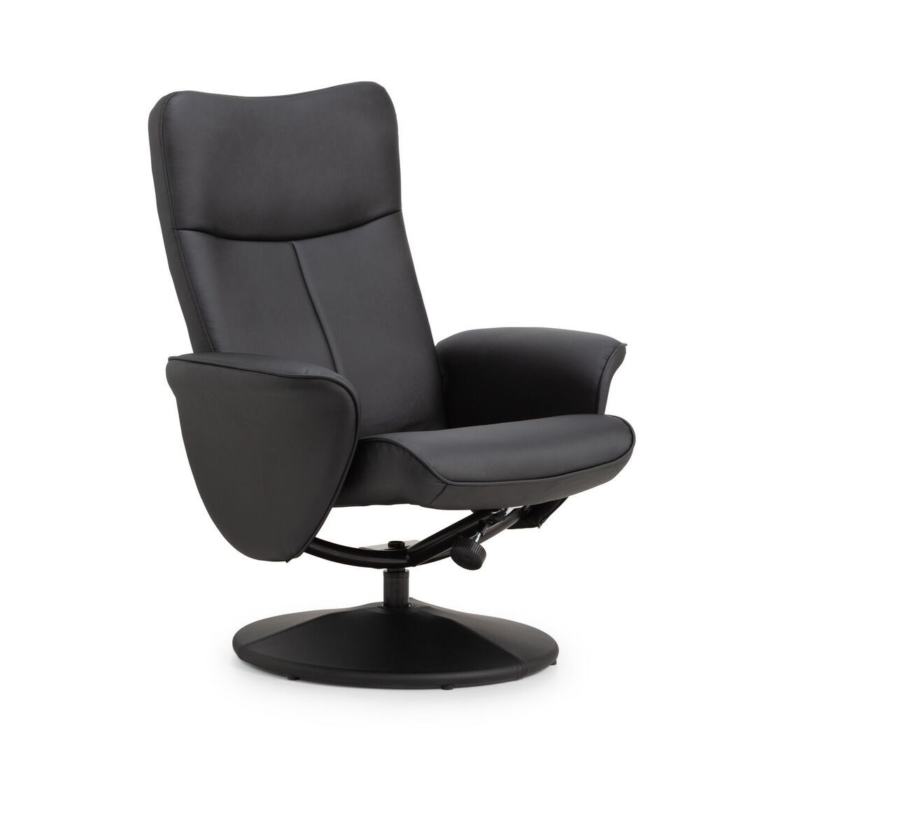 Lugano Recliner Swivel Chair & Stool - Black Faux Leather
