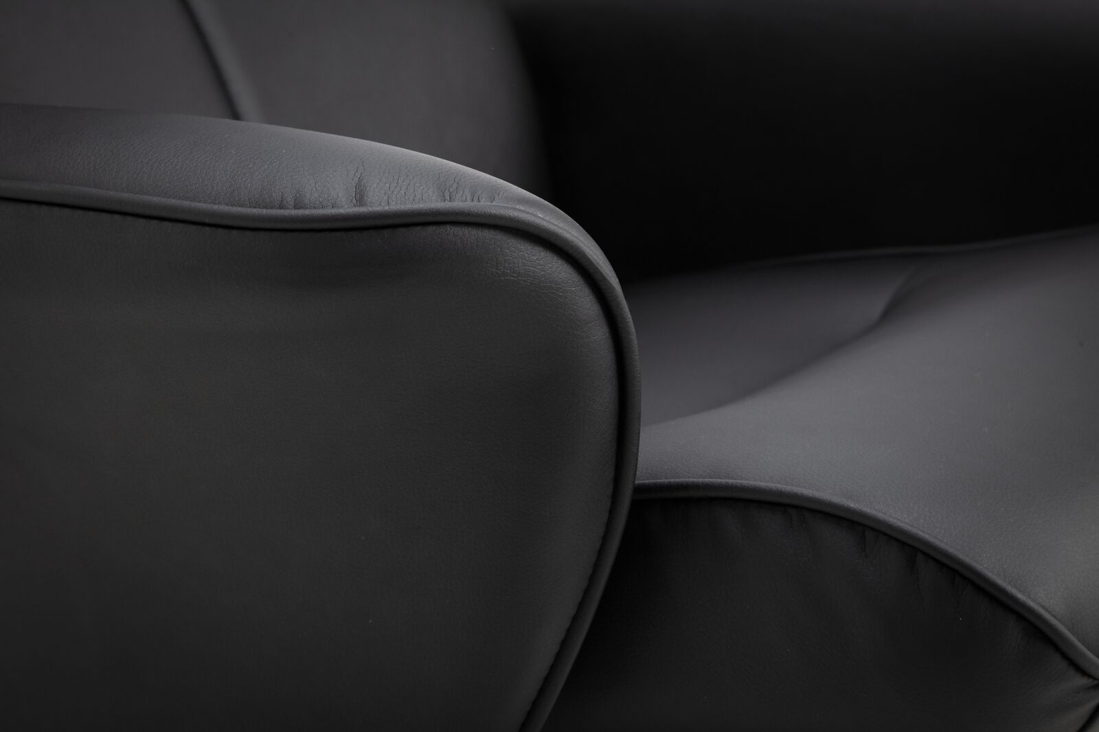 The Lugano Recliner armchair and Footstool provides stylish and modern design, with a beautiful black faux leather finish with a pedstal base, perfect for the enhancing your home. Providing comfort and practicality this chair smoothly swivels and is easily reclining, allowing you to reach your preferred position with ease.