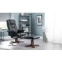 The Malmo reclining swivel chair and stool is upholstered in a soft touch faux leather with a walnut colour laminated base. This chair offers the ultimate in complete sitting comfort and relaxation.