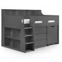 The Jupiter Midsleeper is an ideal space saver, featuring a chest of drawers, various shelves and a pull out desk.