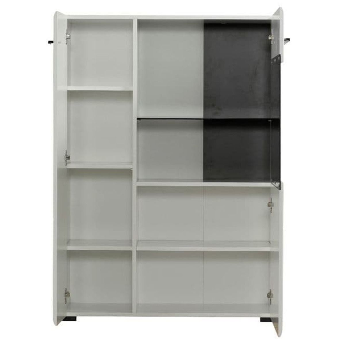 Kaspars 2 Doors Short Display Cabinet with 6 Shelves - White High Gloss Fronts Matt White Sides And Top