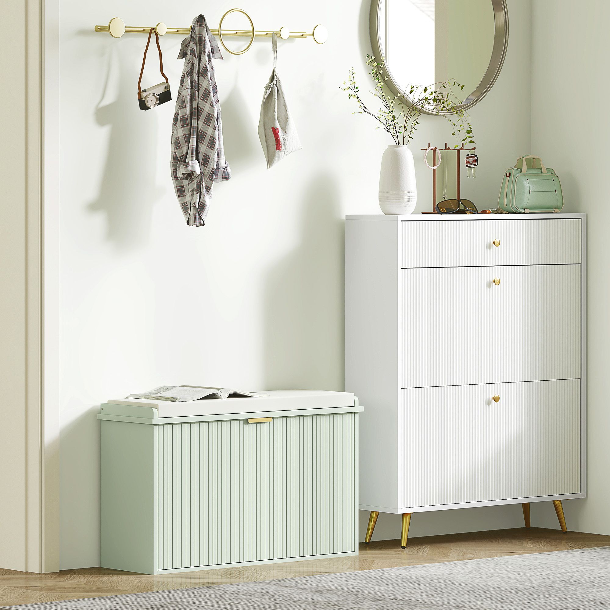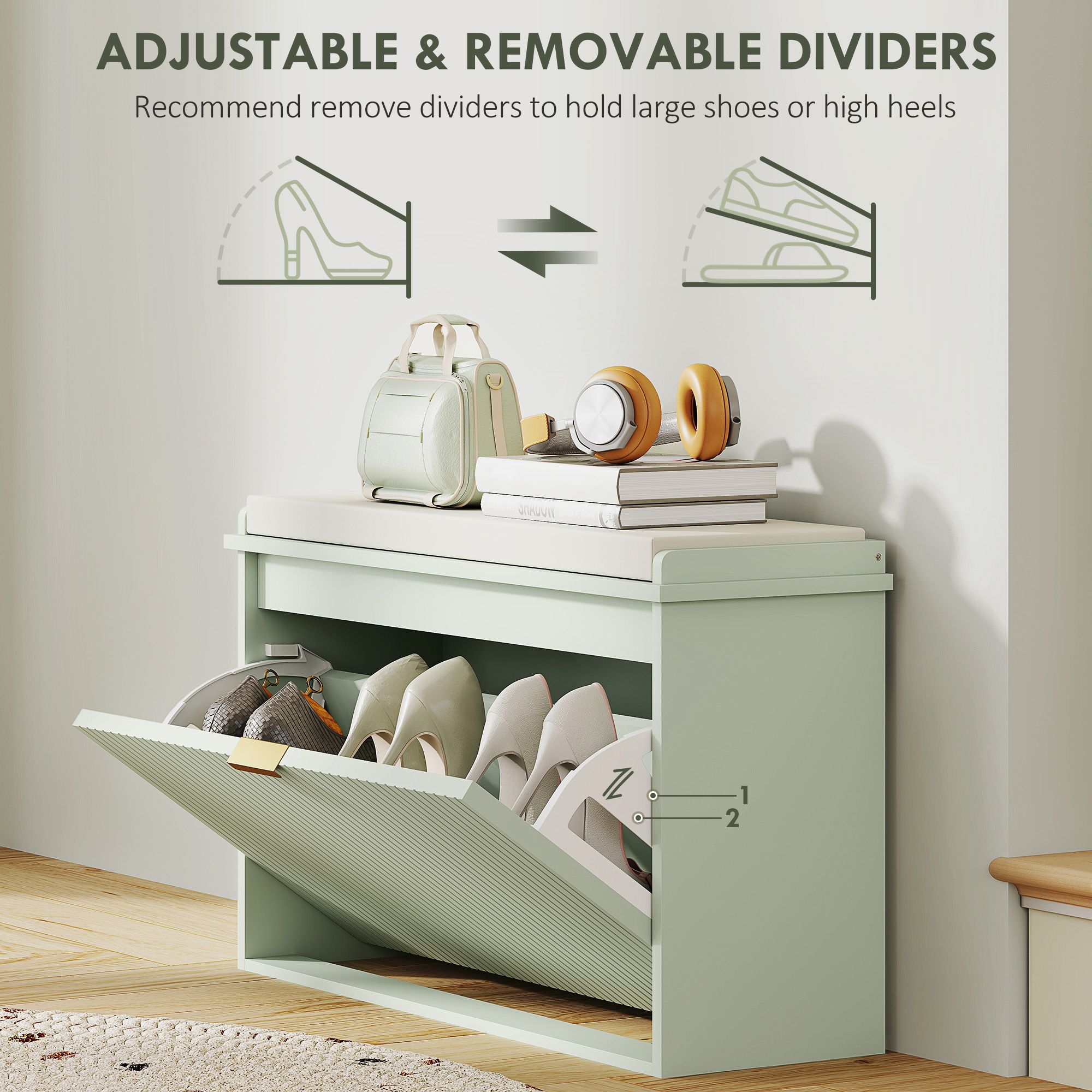 KELVIN 8 Pair Medium Shoe Bench Cabinet Green