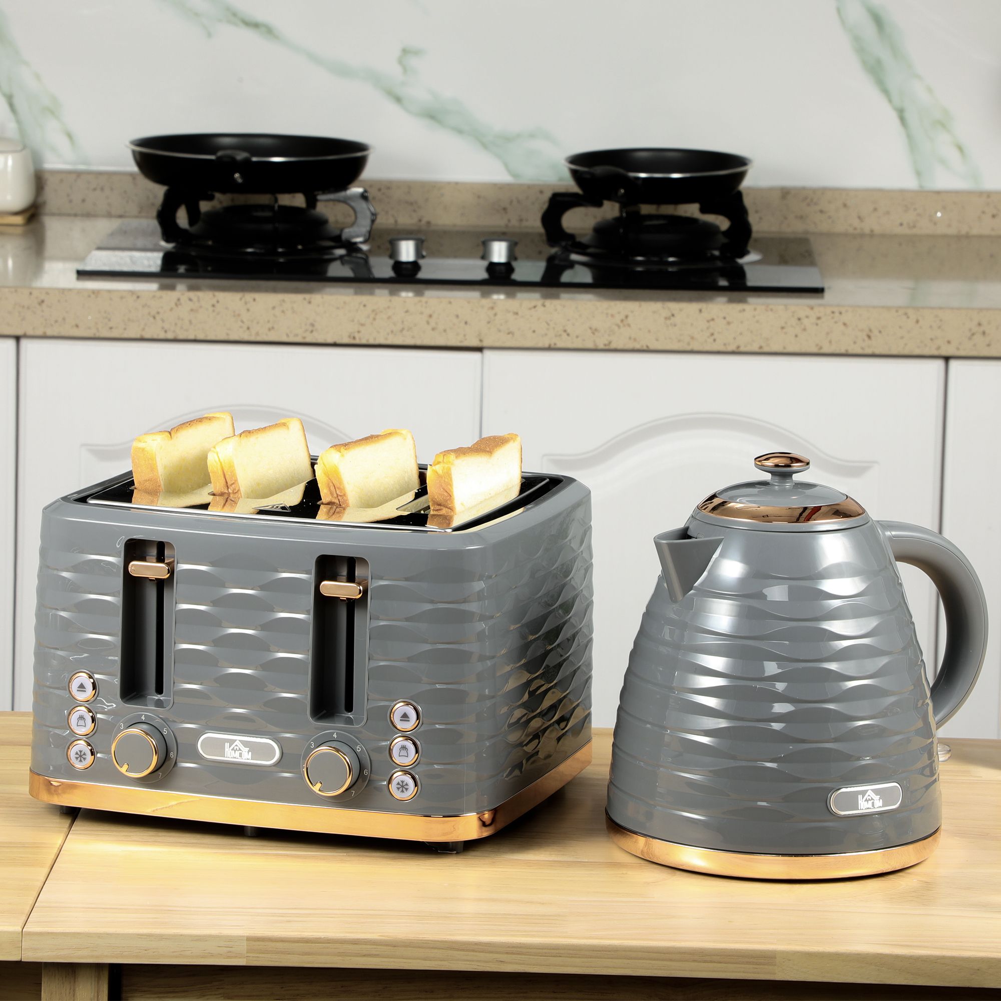 Kettle and Toaster Sets, 1600W 1.7L Rapid Boil Kettle & 4 Slice Toaster w/7 Browning Controls Defrost Reheat Crumb Tray Otter thermostat Grey