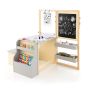 Kids Art Easel Table and Bench Set with Adjustable Easel and Bookshelf-Grey