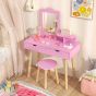 Kids Furniture - Kids Vanity Table and Stool Set with Square Mirror and Storage Shelf-Light Pink