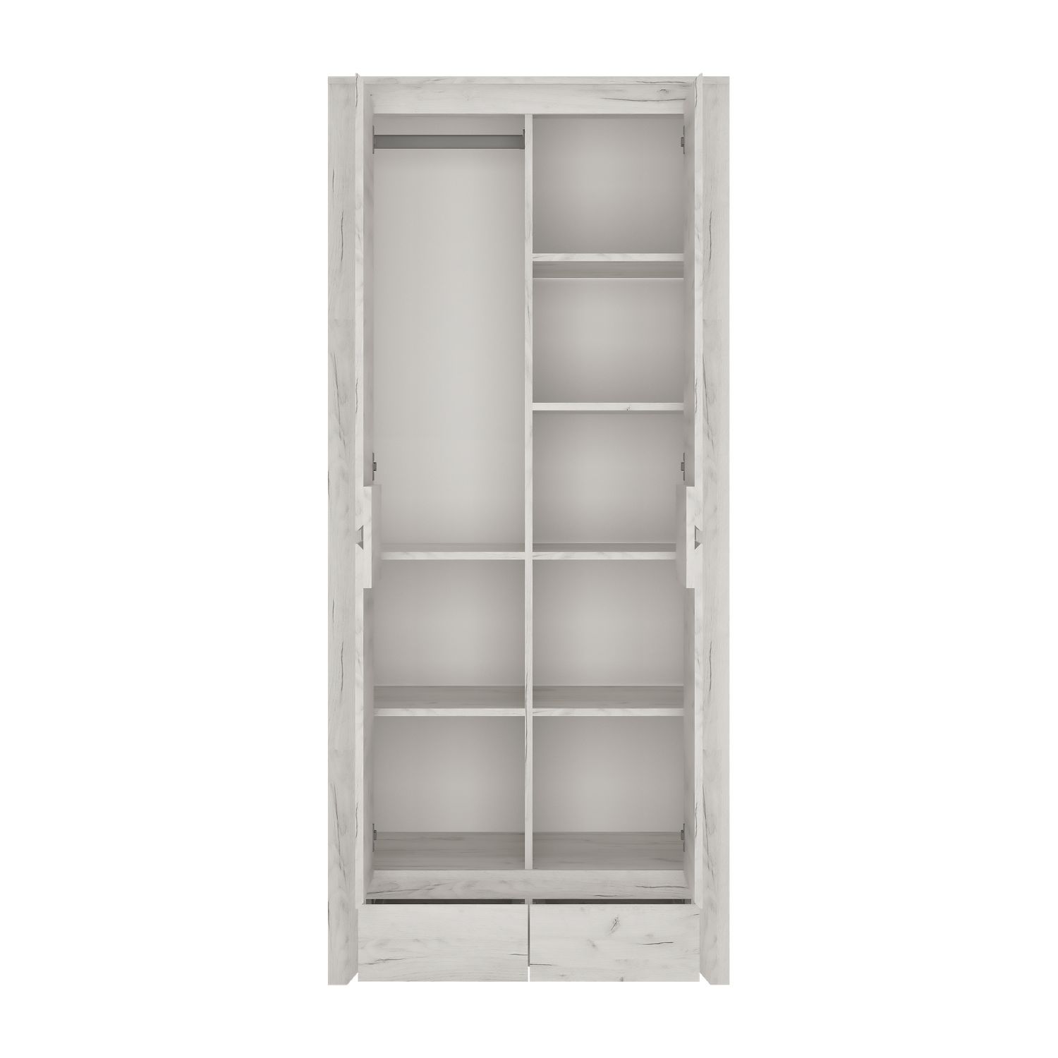 Kids Wardrobe - AKRON 2 Door 2 Drawer Children Wardrobe White and Oak 84cm