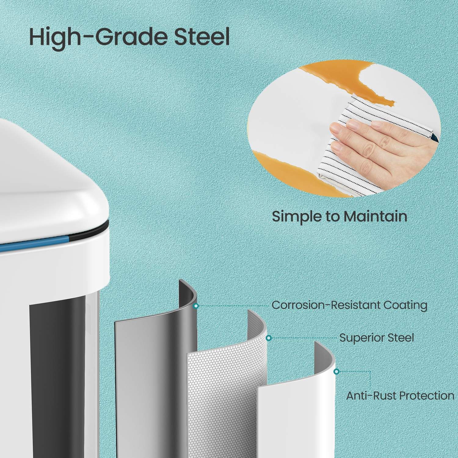 Kitchen Bin - VERRA 40L Double Rubbish Bin with Soft-Close Lid and Plastic Bucket - White