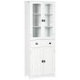 Kitchen Cupboard, Freestanding Storage Cabinet with 2 Adjustable Shelves, Drawer and Glass Door for Living Room, Dining Room, 160cm, White