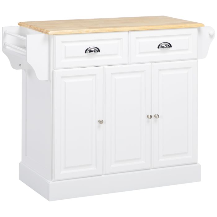 Kitchen Island with Storage Rolling Kitchen Serving Cart with Rubber Wood Top Towel Rack Storage Drawer Cabinet White