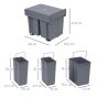 Kitchen Recycle Waste Bin Pull Out Soft Close Dustbin Recycling Cabinet Trash Can Grey (40L (1x20L+2x10L))
