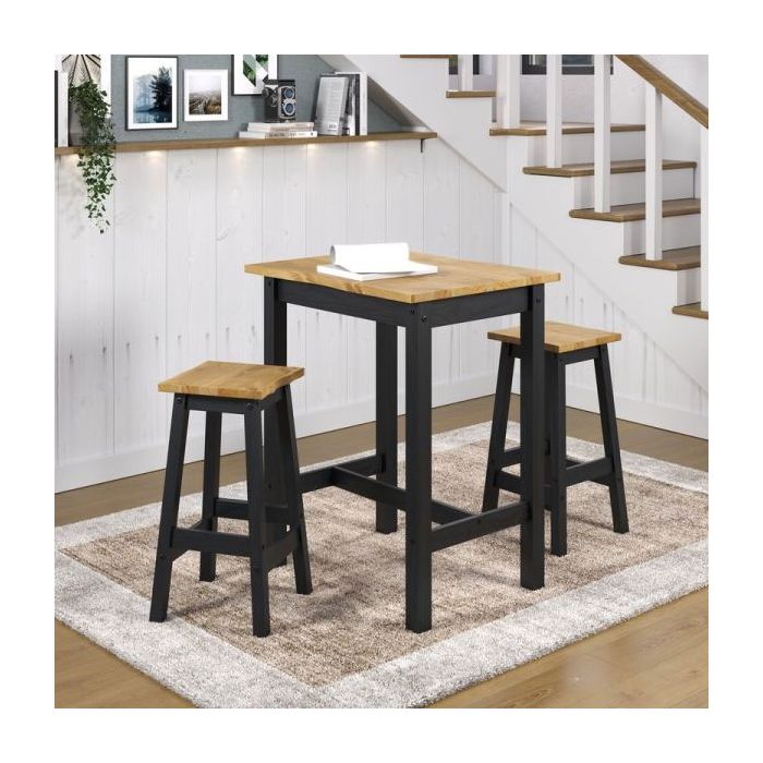 Kyla Live Edge High Breakfast Bar Table with Bar Stools Set - Antique Wax