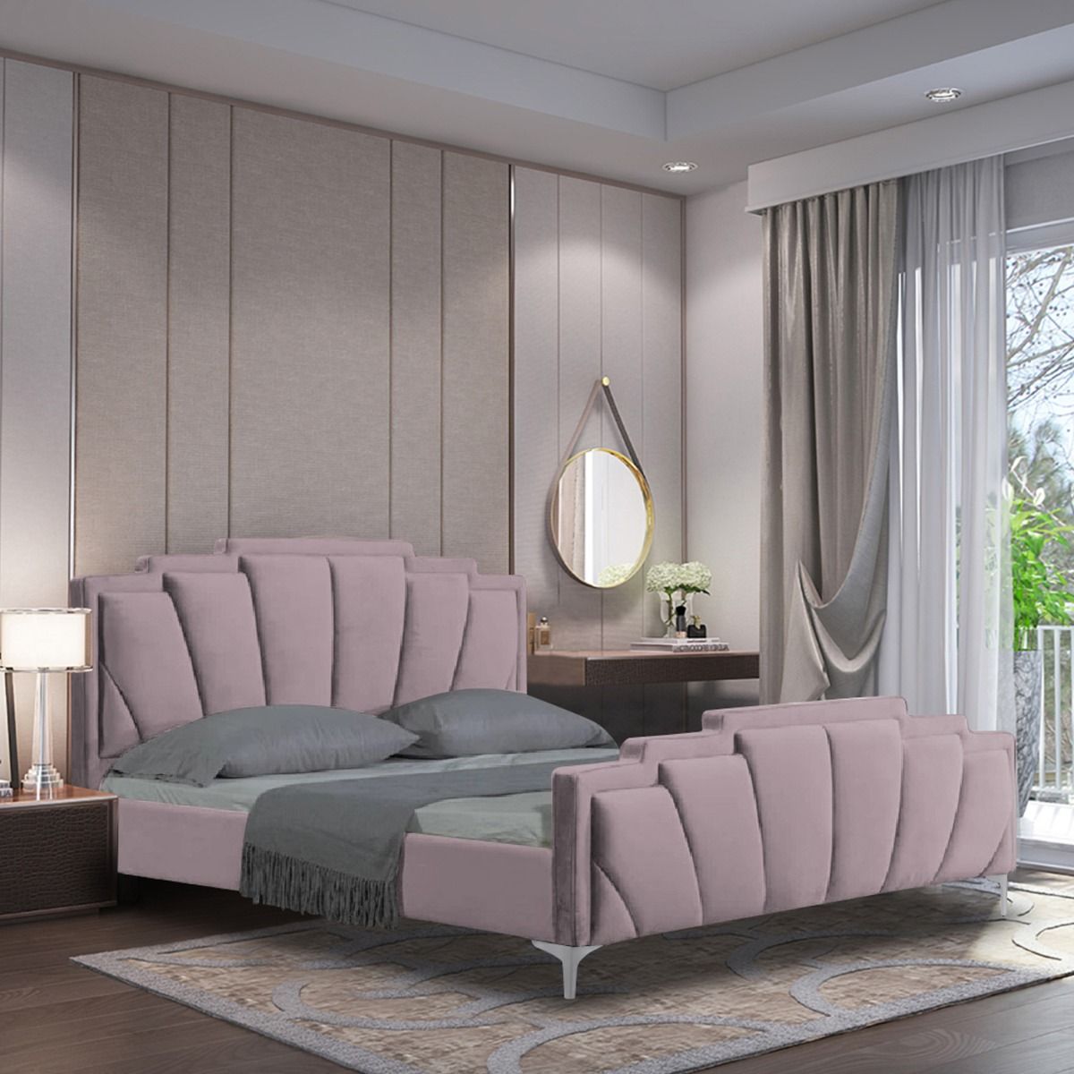 Lanna Plush Velvet Fabric Bed, Pink Colour - 5 Sizes
