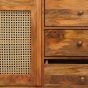 If you’re looking for a small sideboard with a touch of natural charm, the Mango Wood Small 3 Drawer Sideboard is perfect. The one door features a rattan screen, while three drawers provide plenty of storage space. The handmade piece is made of mango wood, with golden metal feet and metal pull handles. Perfect for any living room.