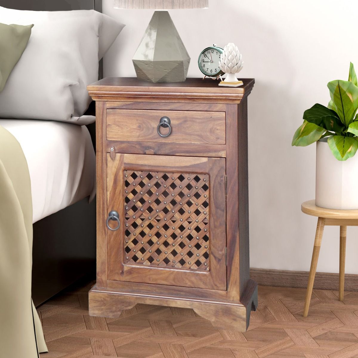 Bedside Table - LATTICE Nightstand Left Side Brown 45cm