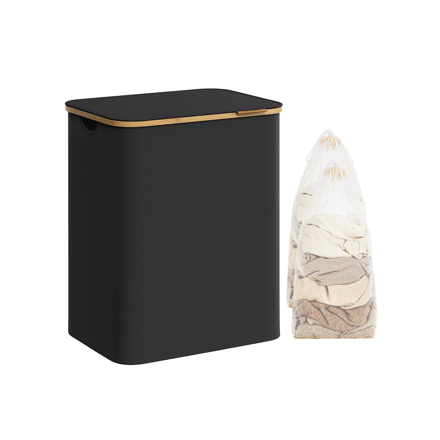 Laundry Basket - LUSNZA 130L 2-Section with Lid - Black