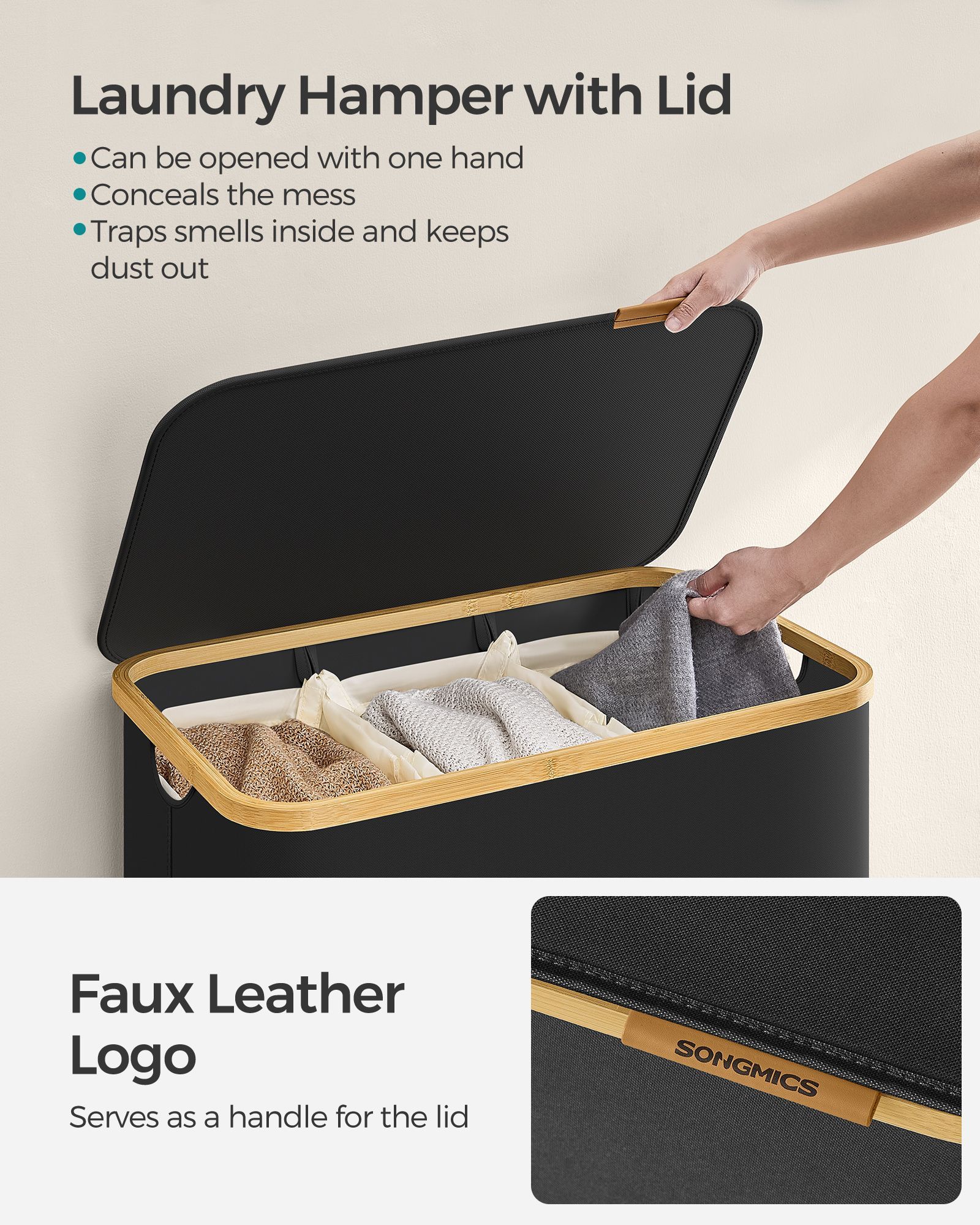 Laundry Basket - LUSNZA 150L 3-Section with Lid - Black