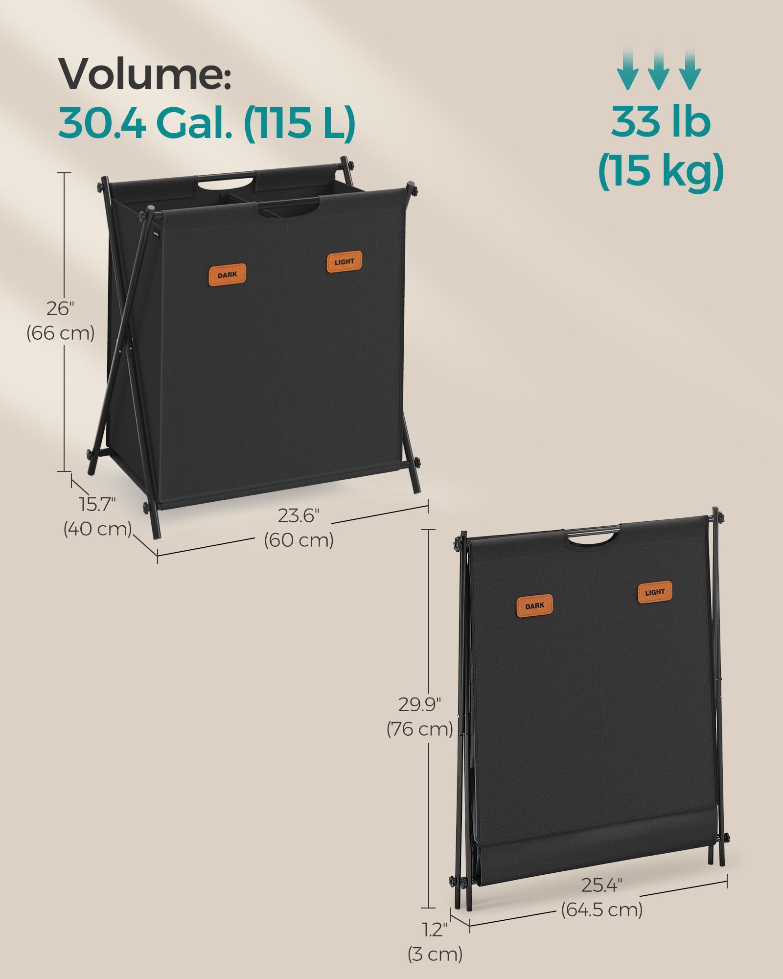 Laundry Hamper - TARRIA 115L X-Frame with 2 Sections - Black