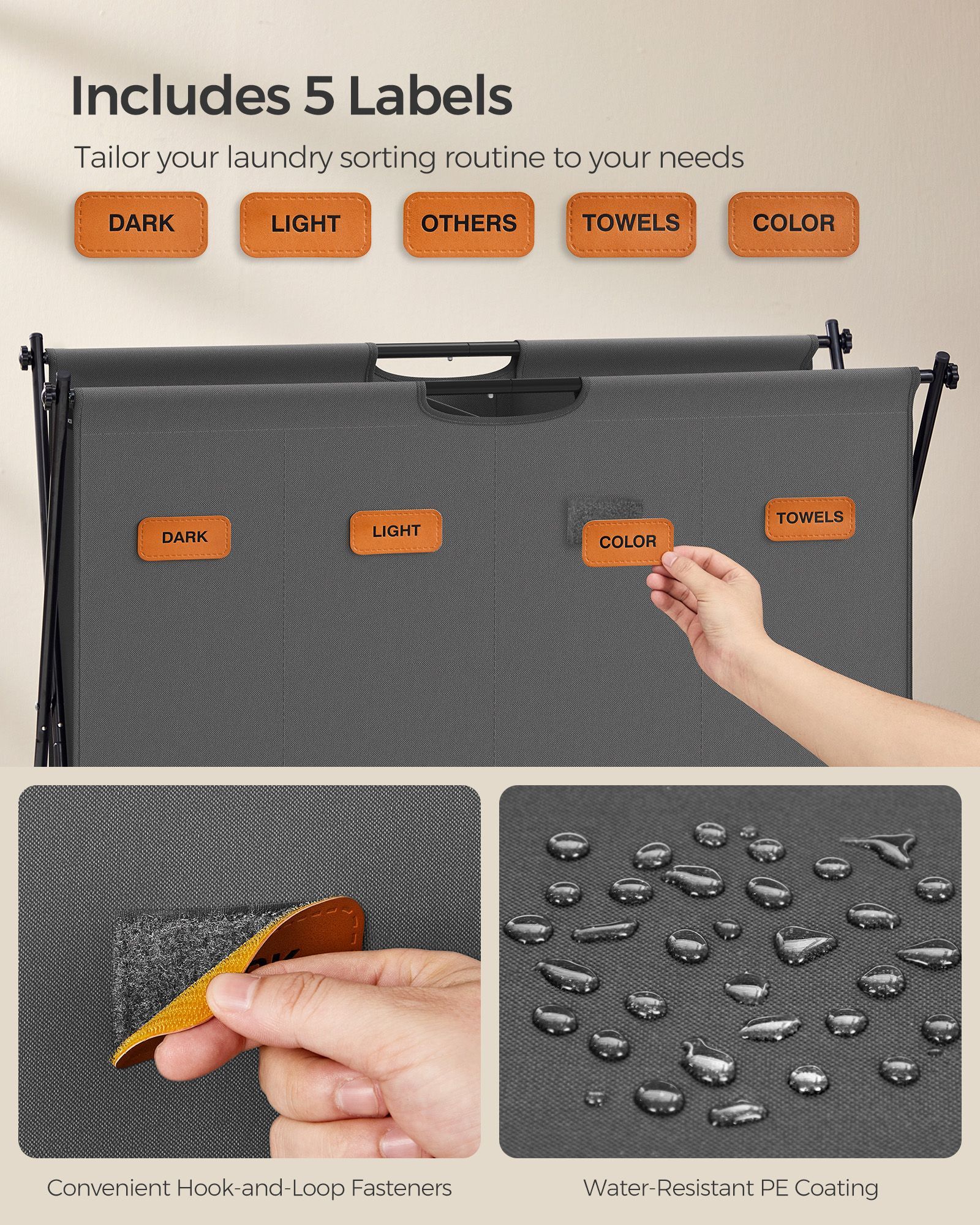 Laundry Hamper - TARRIA 155L X-Frame with 4 Sections - Slate Grey