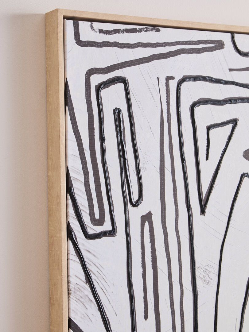 LENVRAE Abstract Textured Wall Art - Black and Cream