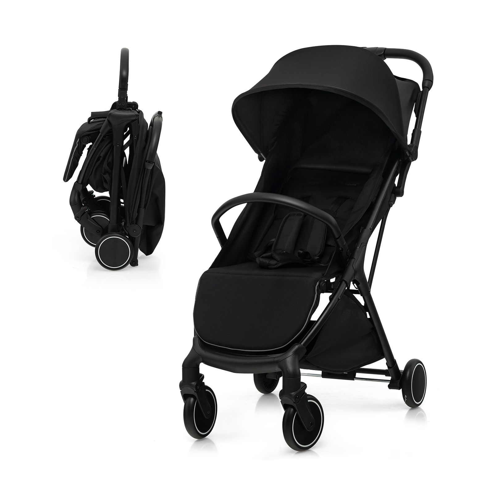 Lightweight Baby Stroller with Detachable Seat Cover - Black