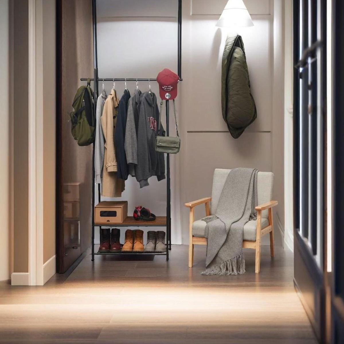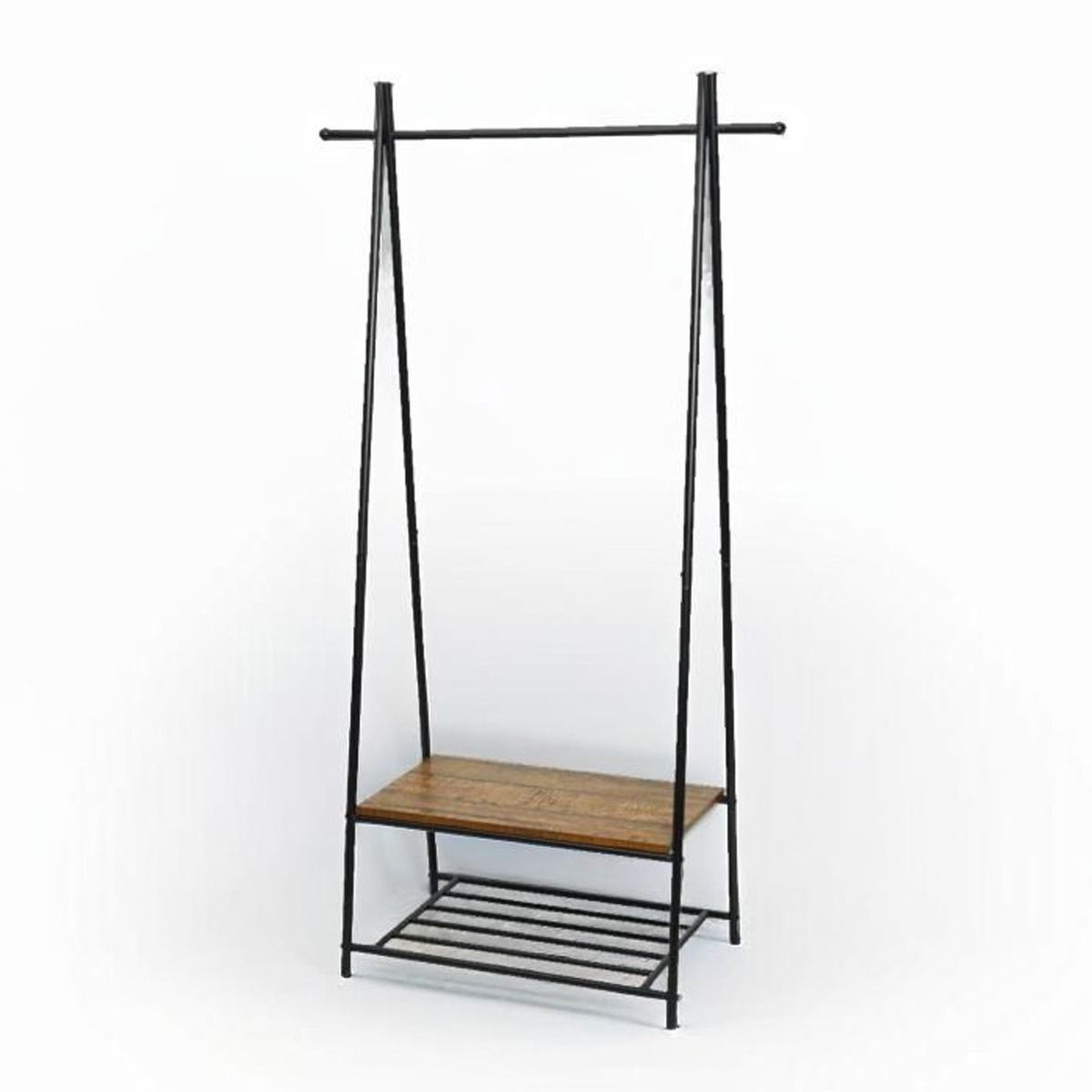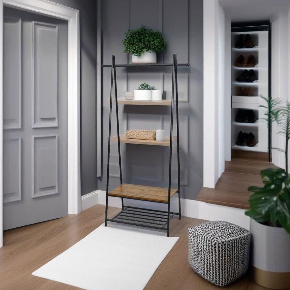 LUMINEX Coat Rack Freestanding Clothes Stand with Shoe Storage and Hat Hooks - Rustic Brown and Black