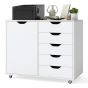 LUVE 5-Drawer Chest with Door and Adjustable Shelf-White
