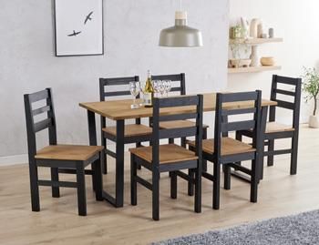 Introducing the Matteo Dining Set from Home Done, a sophisticated blend of rustic charm and modern elegance. This set features a solid topped 150 cm rectangular dining table, paired with a substantial and hardwearing black stove-painted metal underframe. The table's antique waxed pine finish adds warmth and character to any dining space. Accompanying the table are six sturdy ladder back chairs, crafted from solid pine with a contemporary black wax finish and contrasting antique pine waxed seats. Designed for both style and durability, the Matteo Dining Set is the perfect addition to elevate your dining experience.