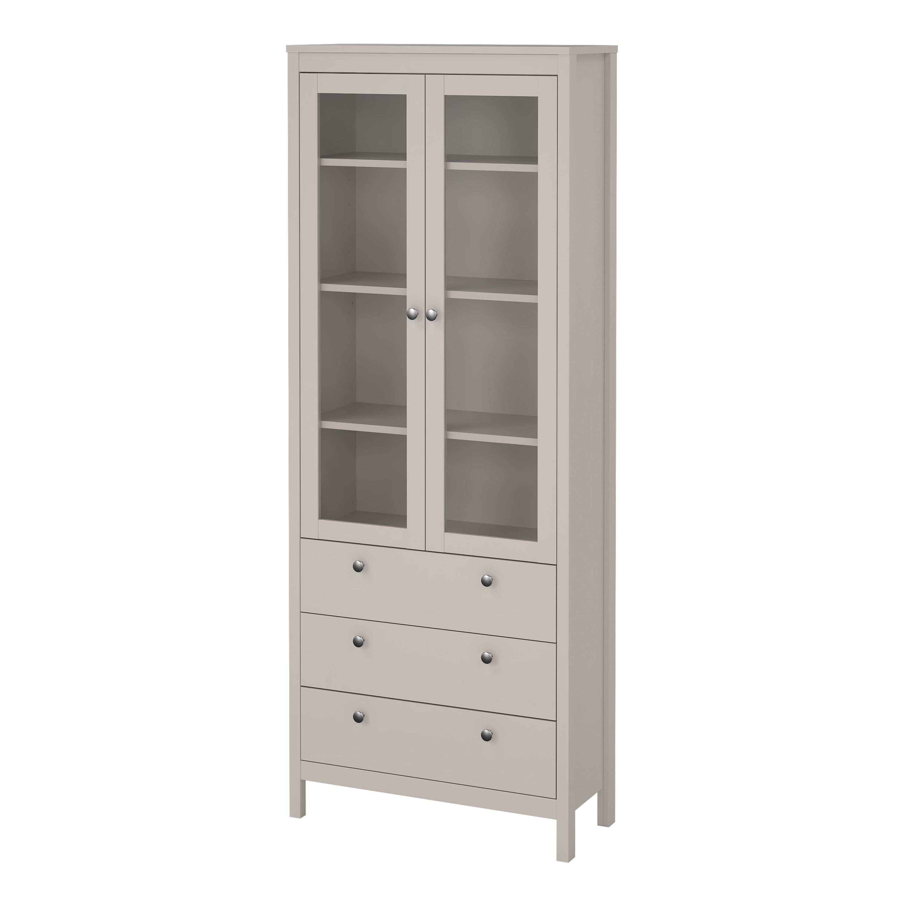 MEMPHIS China Cabinet 2 Glass Doors with 3 Drawers in Beige