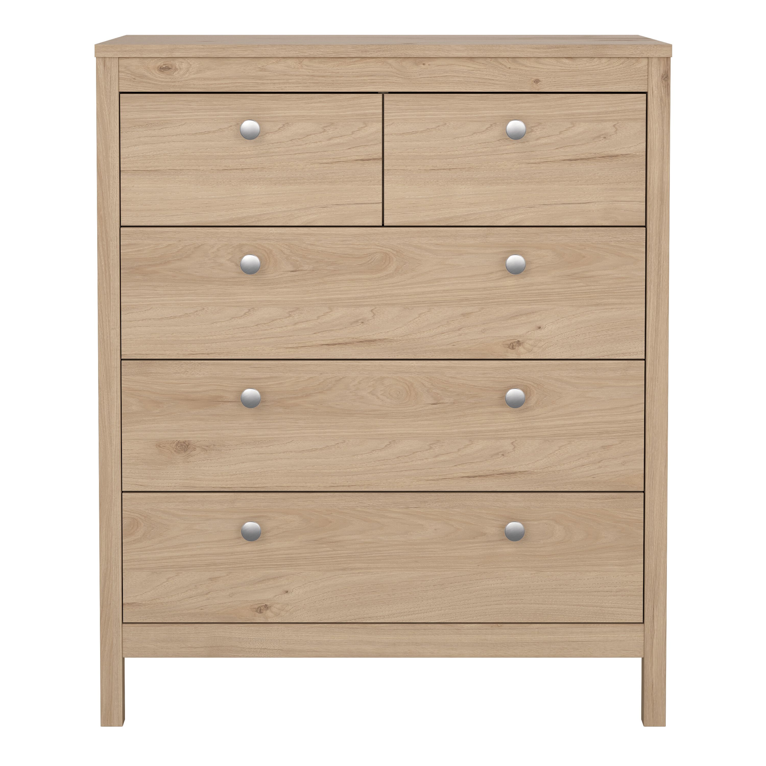 MEMPHIS Oak Finish Chest of Drawers - Medium-sized, 5 Drawers